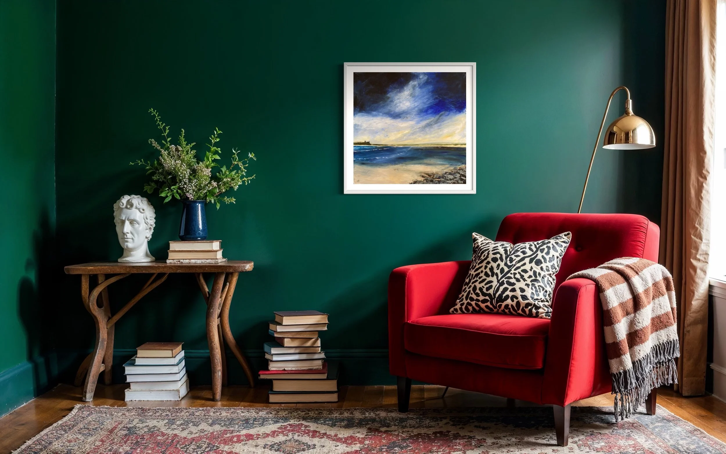 One of three turquoise pieces painted at the same time. predominately turquoise, in oil and cold wax on cradled panels, framed in a white float (tray) frame. This one is available as a framed canvas print.